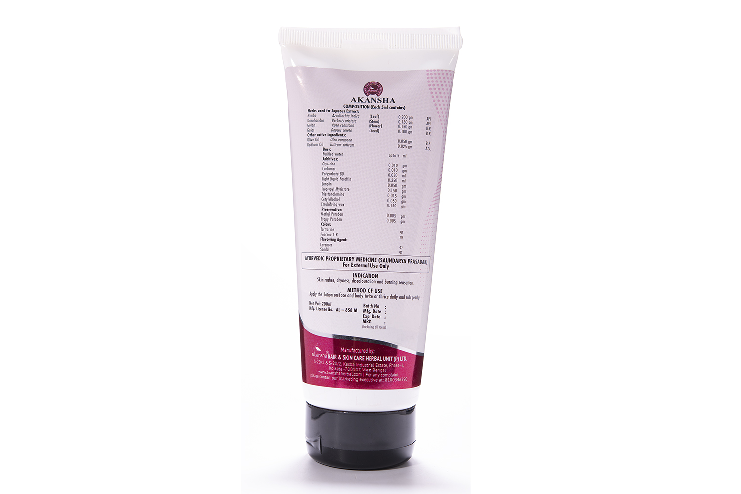 Helps to make skin soft, fair and glowing. Removes skin rashes, dryness, discoloration and burning sensation.